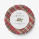 Plaid Red Check Rustic Merry Christmas Farmhouse Paper Plate