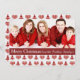 Flat holiday photo card with festive red banner and decorated with craft checked red Christmas trees and hearts pattern. Customise with your own photo and text. Click "customise it!" to reposition or resize your photo if required.