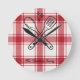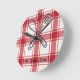 Plaid Red & White Custom Name Gift Round Clock