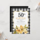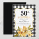 Plaid Surprise 50th Black Yellow Floral Birthday Invitation
