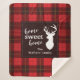 Cute home sweet home Christmas blanket you can easily customise by clicking the "Personalise" button, Featuring deer silhouette and clan Wallace tartan in red check.