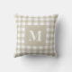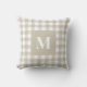 Plaid Tan and White Gingham Pattern with Monogram Throw Pillow