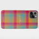 Lightweight, slim design cell phone case in a melon, raspberry and aqua plaid, by HAMbWG R2