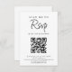 Project a sense of modern simplicity with this stylish simple wedding response card that generates a QR Code linking back to your wedding website. This method of receiving your guest responses has become quite popular. A casual modern calligraphy script paired with a simple italicised type face make an attractive pairing to convey your information beautifully and tastefully with a minimalist look that has modern flair. Personalise this card with the your URL information and the deadline date for your wedding guests to notify you with their responses.