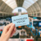 This basic badge design features the message "AUTHORIZED VISITOR", and a customisable company name or other custom message. A badge like this could be used to identify that somebody at a workplace or business is an authorised guest/visitor. [~Z0000307]