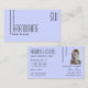 Make a lasting impression with this classic and simple business card design with fine decor stripes, monogram and (employees-) photo on a plain baby blue background.