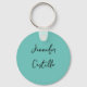 Plain Blue Black Minimalist Modern Calligraphy Key Ring