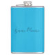 Plain Elegant Blue Script Calligraphy Name Hip Flask