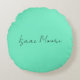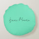 Plain Elegant Green Blue Script Calligraphy Name Round Cushion