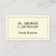 This classy, plain, and professional business card design features a light tan background, and a double-line border. It could be used by a professional such as a family physician, ophthalmologist, medical doctor or rheumatologist. The name, profession and contact details can be personalised.