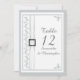 Pretty chic elegant modern plain silver grey and white filigree lace vintage damask pattern with white faux satin ribbon and silver buckle. This is a contemporary stylish classic wedding or special occasion table number on a custom background. Customise to choose your background from a range of custom colours to match with your coordinated wedding stationery suite and other bridal stationery essentials, easily personalised with your text to the templates to create your own unique professional luxurious simple plain and minimalist lacy design for your special marriage or other occasions or celebrations. Visit the PERSONALIZED _WEDDINGS STORE for matching products.
