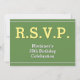 This plain, humble RSVP card design features the message "R.S.V.P." on the front, along with a personalised event name. It also features a customisable RSVP form on the back for the recipient to complete. RSVP cards like this might be used to find out who will be attending a baby shower, a dinner party, a wedding shower, a Christmas party, or some other celebration.