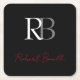 Plain Modern Black Red Monogrammed Initials Name Square Paper Coaster