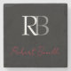 Plain Modern Black Red Monogrammed Initials Name Stone Coaster