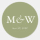 Plain Modern Moss Green Classic Monogram Wedding Round Sticker