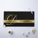 The black background is sleek and stylish with a single gold stripe and a personalised monogram.
