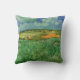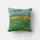 Plain Near Auvers by Vincent van Gogh is a vintage fine art post impressionism landscape nature painting. A farming scene featuring farm land with green fields and tall trees on the rolling hills near Auvers, France. Fluffy clouds are in a blue sky on a sunny summer day.