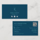 Plain Ocean Blue with Monogram QR Code and Jewels Business Card