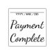This plain rubber stamp design features the messages "Payment Complete" and a line where a payment date can be written. It could be used to mark an invoice or bill as having been paid in full.
