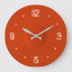 A plain red clock with white interesting numerals. This design is fresh looking and available in round or square shapes.Perfect for your modern kitchen.