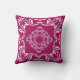 Plain Rubine Red Background | White Damask Pattern Cushion