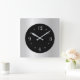 A simplistic wall clock with a background of silver effect and a black face. Complimenting this design are silver clock hands and Numerals.