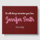 This simple funeral/memorial sympathy guestbook features the message "We will always remember your love,", and the personalised name and birth/death dates of the individual who has passed away. It also features a dark red background. It could be used to record fond memories of somebody who has recently passed on.