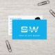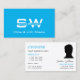 YOUR FAVORITE - Make a lasting impression with this modern business card design with monogram and (employees-) photo, on plain sky blue and white coloured backgrounds.