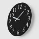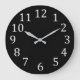 These custom wall clocks feature a plain solid black background with large white numbers. You can customise these with a logo, message, etc. Purchase online at CherylsArt on Zazzle.