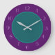 A plain colourful clock with a teal green centre and dark purple border. Pink mauve Numerals and a silvergrey clock hands complete this atmospheric design.Visit orientcourt for more interesting clock designs.