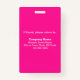 Plain texts design badge with employee photo that you can customise for you and your employees. Design colours and shape are white texts on pink background and portrait format rectangle shape. To customise this badge, type your business or company name, address, phone number, employee name, employee title, employee ID number and upload employee photo. After typing texts and uploading photo, please check the appearance on front and back sides. If the appearance is pleasing to you, you can place your order now. If you need to resize and move the texts and photo to fit on this badge, please change in the design tool. You can also make other changes in the design tool according to the appearance that you prefer such as changing the background colour, font colour and font style.