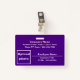 Plain texts design badge with employee photo that you can customise for you and your employees. Design colours and shape are pink and white texts on purple background and landscape format rectangle shape. To customise this badge, type your business or company name, address, phone number, employee name, employee title, employee ID number and upload employee photo. After typing texts and uploading photo, please check the appearance on front and back sides. If the appearance is pleasing to you, you can place your order now. If you need to resize and move the texts and photo to fit on this badge, please change in the design tool. You can also make other changes in the design tool according to the appearance that you prefer such as changing the background colour, font colour and font style.