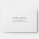 RSVP return address envelope in white, with your name(s) in a elegant script font, and the address in a plain formal serif font. The fonts on both lines can be change to suit your style.