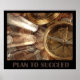 A brass navigational compass over coins with light beams eminating from the compass and the words "Plan to Succeed"