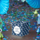 Plane pattern on a navy blue background. Great for baby shower or kids birthday. Matching invitation, paper plates, napkins, candy tin and banner available.