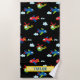 Planes Helicopters & Clouds Artwork on Black, Name Beach Towel