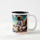 A whimsical cartoon astronaut bounces joyfully across the colourful surface of a distant planet, surrounded by quirky alien landscapes. The light-coloured background enhances the playful scene, inviting viewers to imagine the wonders of space exploration and the thrill of discovering new worlds.