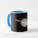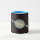 SATURN. (Shown in true colour) With its resplendent ring system, Saturn is arguably the most stunning planet in our solar system. Located sixth in line from the sun, it is the second-largest world orbiting the sun, after Jupiter. Saturn is made mostly of hydrogen and helium. Its volume is 755 times greater than that of Earth. Winds in the upper atmosphere reach 1,600 feet (500 metres) per second in the equatorial region. (In contrast, the strongest hurricane-force winds on Earth top out at about 360 feet, or 110 metres, per second.) These superfast winds, combined with heat rising from within the planet's interior, cause the yellow and gold bands visible in the atmosphere. Saturn's ring system is the most extensive and complex in the solar system, extending hundreds of thousands of kilometres from the planet. Saturn orbits at an average distance of 886 million miles (1.4 billion kilometres) from the sun, the central star in our solar system, meaning that one Saturnian year lasts roughly 29.4 Earth years, according to NASA(opens in new tab). It usually takes sunlight 80 minutes to travel between the sun and Saturn.
