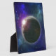 surrounded by colourful nebular gases and a sun burst it sure looks heavenly.