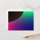 This Postcard features a digitally created image that resembles the crescent of a dark planet surrounded by a cosmic aurora of green, blue, purple and pink.