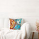 Digital fluid art pour painting style blue, brown, copper, white pillow.