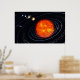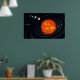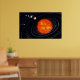 Stunning & dramatic graphic astronomy Wall Poster of the solar system with fiery red sun & planets in orbit. Inspiring & unique space themed gift for those who dream of astronauts and exploring the realms of outer space.