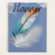 The feathers wouldn't be bulky or stiff. Instead, picture them gently cascading down the front and spine of the planner, with a smooth, vegan leather backing for structure. Perhaps there's a thin, metallic band encircling the cover to hold everything together and add a touch of shine.