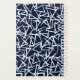 This planner notebook is shown with a abstract print in colours of navy blue and white.