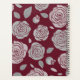 This planner notebook is shown with a rose floral print on a rich Bordeaux background. Personalised name for you to customise to yours inside a White oval with dual coordinating coloured borders of putty and plum on the front. Back same colour and rose floral print. Text is shown in Black. Colours of Grey, Pastel Mauve, Bordeaux.