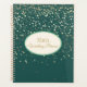 This planner notebook is shown with a petite Champagne stars print on an Emerald Sea green coloured background. Personalised name for you to customise to yours inside an Ivory oval with dual coordinating coloured borders on the front of willow green and ivory, matte gold text. Back same colour and stars print.