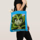 Blue Tote Bag With A Beautiful Big Eyed Plant,One of the Planty Tribe People.
