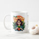 Celebrate your love for plants with this vibrant cartoon design showcasing a cheerful woman with glasses holding a potted plant. The warm retro sunset colours blend perfectly with the lush greenery, making it a striking addition to any tee.