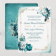 Plantilla de Boda Verde Azulado y Dorado Invitation