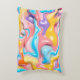 The cushion is small to medium sized. It can be washed. It is well constructed. The material used is pleasant and feels decent quality. It has a very slight plush feel which is good. It is well labelled and its care clearly stated. Theres nothing not to like about it. All in all a good item. The deduction of one star overall is due to long delays in delivery to the UK. It's not clear if this was due to Zazzle or somewhere else in the chain as I did not receive status updates of dispatch or progress. I cannot comment anymore on that other than to say that was our experience but it may not be the same for you. The printing was surprisingly close to what we were expecting. Its an art piece and on material so its hard to assess the precision of printing but it seems close to the original. The soft lines are reproductions of the original. The colour is a fair reflection of the painting. This was printed in the US and it looks like US quality. No issues.
